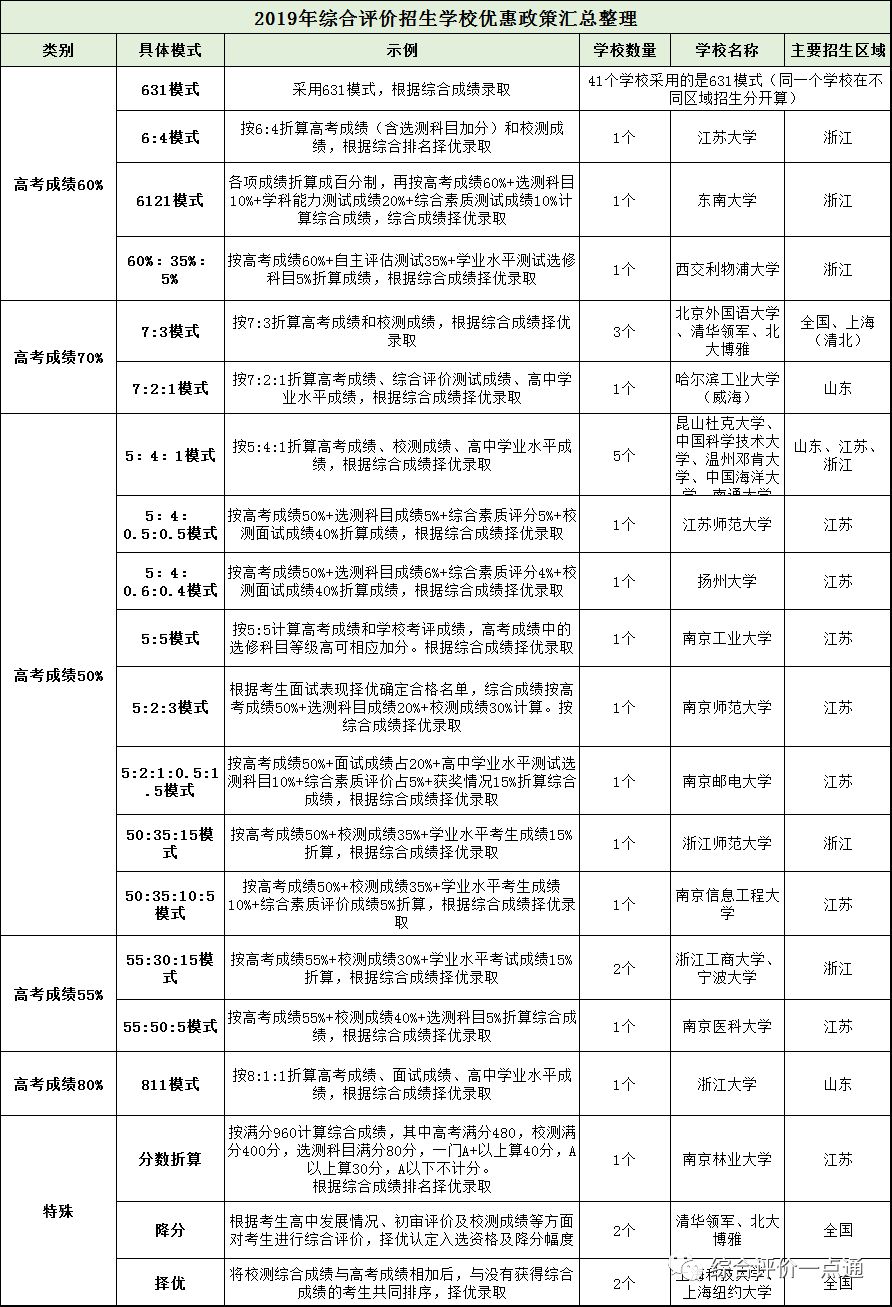 下面我们用一张表格来汇总2019年参与综评的高校的优惠政策,以供参考。