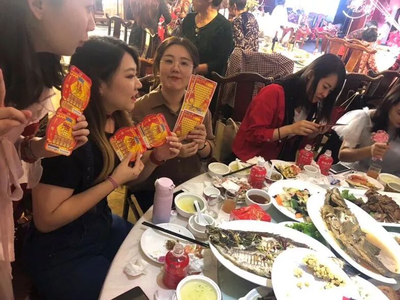 宾客们都迫不及待地在宴席上刮起了彩票,