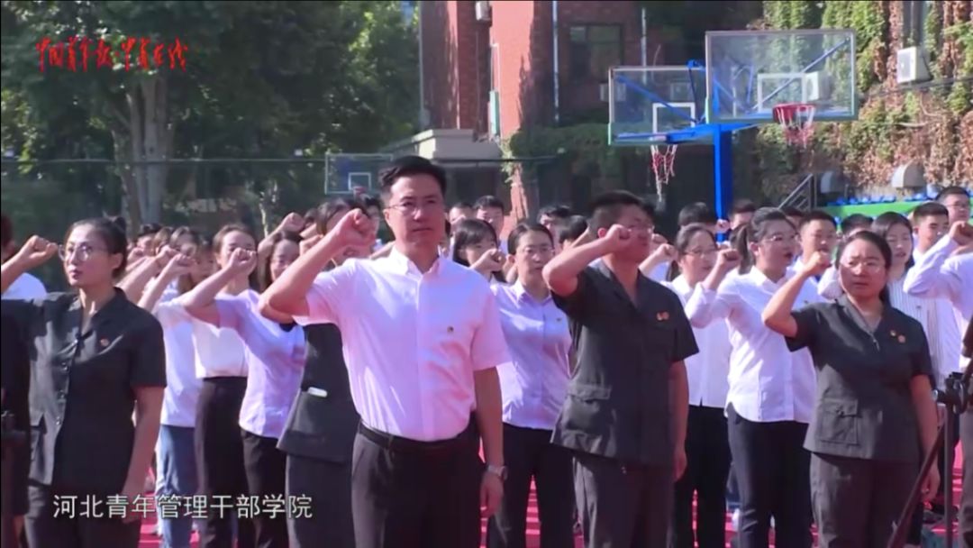 在河北青年管理干部学院,团省委组织“青年讲师团”代表、新时代万名“冀青之星”代表等团员青年代表200余人,参加了升国旗、唱国歌、朗诵爱国诗歌、进行国旗下的演讲、重温入团誓词等环节。