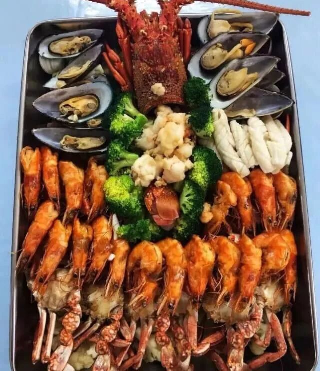 我们可以看到这每盘山珍海味,都有龙虾,螃蟹,还有大虾,鱿鱼,一些壳类海鲜,配上西蓝花和一些青瓜。荤素搭配,营养又美味。小妖在这里不禁想着,这华为公司的待遇也太好了吧,虽然大家没有在海边,但是每一天每个员工每天都可以在这沙特阿拉伯的华为公司的饭堂里面吃着海鲜,无论是东海岸的还是西海岸的海鲜,都是饭堂里菜盘的“座上宾”。