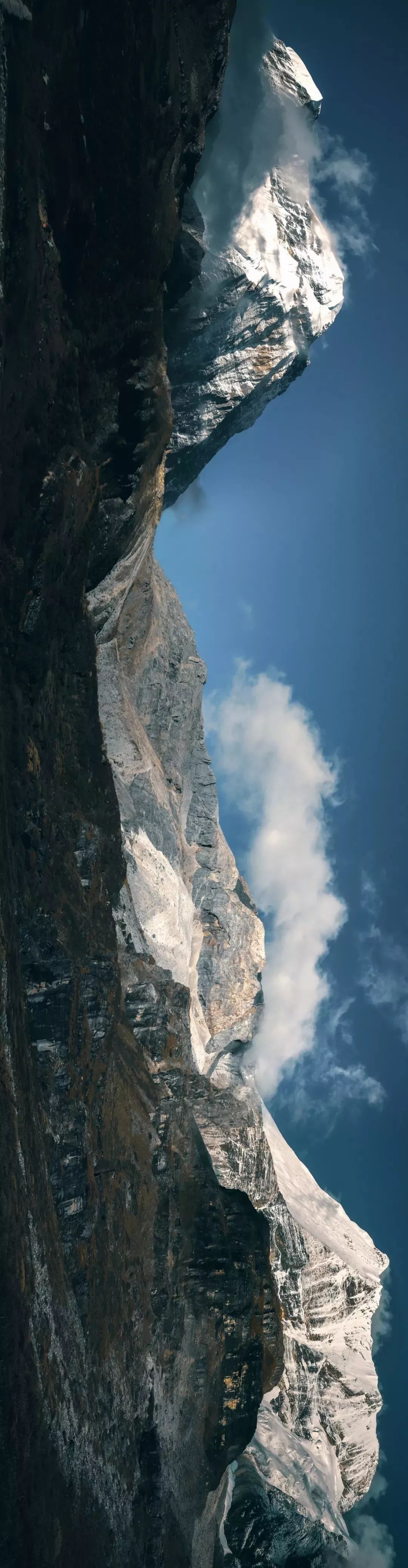 那是我第一次去西藏和尼泊尔,第一次看见雪山,第一次离它那么近,第一次觉得原来书上描述的是那么真实:“它就像一座极美的水晶冰雕,见不到一丝尘世的烟火气息,云海翻腾、薄雾笼罩,它如云层之上的仙山,虽美却远在天边,也因此让人对它产生崇拜和敬畏。”