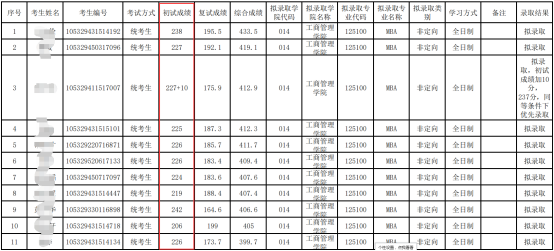 事实上每年MBA全日制的录取人数只在30-40人左右,下面是19年MBA全日制拟录取名单,一共是拟录取30人,最低分179,国家线是170,所以也就刚过国家线的样子。低分段其实还是比较多的,主要集中在190-215这个区间。