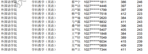 19年是录取了15人,分数普遍很高,19年教育专硕的国家线是325,上师大学科教学(英语)录取最低分是384,基本上是在390+。