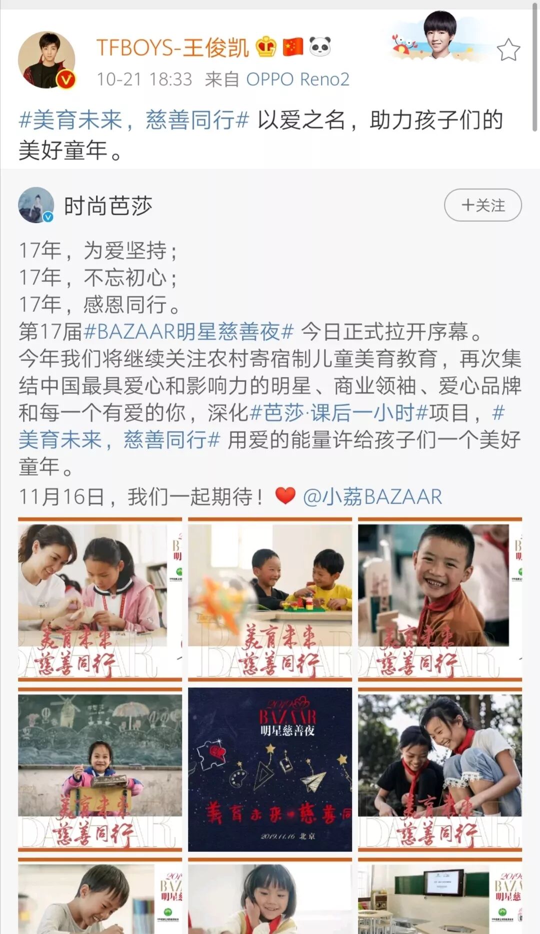 1王俊凯为美育未来,慈善同行公益项目发博。