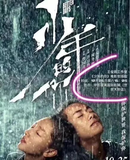 《少年的你》讲述的是因为一场校园暴力事件导致两个人的命运发生了改变,从而决定守护彼此成为想成为的成年人的故事。在这个故事中,易烊千玺扮演的是一位成绩不好的体育生,从小混迹街头,生活在社会底层的泥泞里,目光所及没有希望、没有未来,直到他遇见了陈念。陈念是由金马影后周冬雨所饰演,陈念是一位性格内向的优等生,在学校里受到校园暴力,唯一的念头就是通过努力复习考上好大学从而离开小镇。