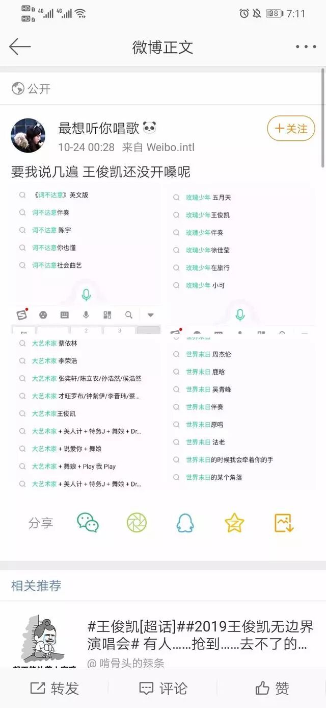 王俊凯演唱会歌单平台搜索可见 少年实红优秀