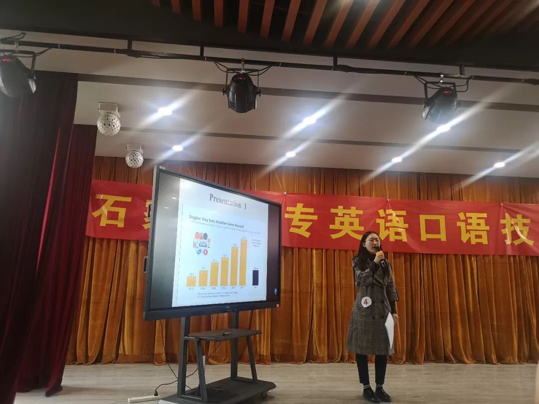 点击上面“蓝字”关注我们!为了备战河北省高等职业院校英语口语技能大赛,更为了提高我校学生运用英语进行职场交际的综合能力,检验我校学生英语学习水平,增强我校的英语学习氛围,语言文学系英语教研室举办了“石家庄幼专第一届英语口语技能大赛”。本次大赛分专业和非专业两个组别分别进行了初赛和复赛的选拔,最终有8名专业选手和8名非专业选手进入了校决赛。校决赛于10月23日14:30在语言文学系实训教室成功举行。语言文学系苏艳霞主任和段继红副主任亲临现场。由10位英语专业教师担任本次大赛的评委。