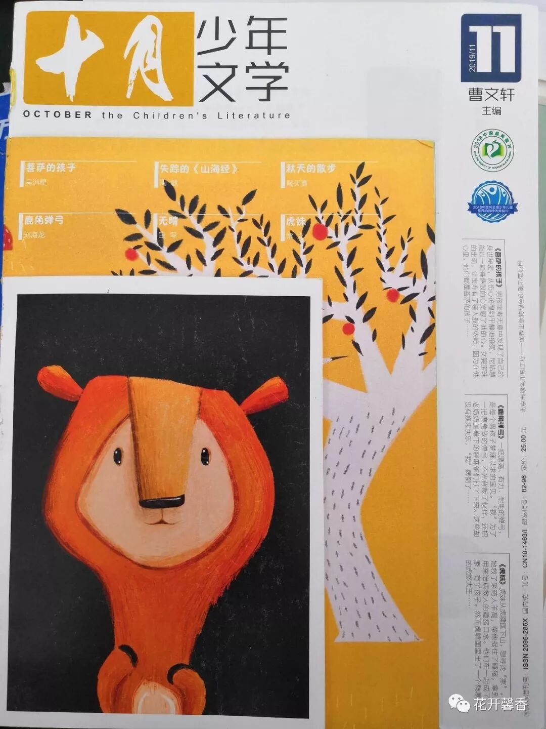 很荣幸,这首小诗发表在曹文轩主编的《十月少年文学》雏凤清音栏目(2019年11月刊)这本杂志是孩子特别喜欢的少年文学期刊,每期必读,常常读后眼睛湿润了。Coco常常和我说,妈妈,十月里的文章真的好感人,写得真好!那篇短篇小说我特别喜欢!……诸如此类的感受,我能体会到孩子在优秀文学期刊的滋养中所收获的精神养料。