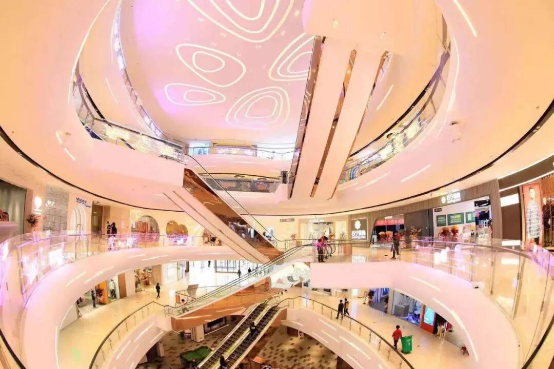 次中庭弧面侧裙浪漫优雅似仙人平步青云天花连续灯槽与侧裙发光条巧妙结合搭配暖色地台是邀你细品生活与家居味道完善舒适购物体验的贴心之举