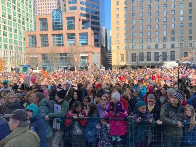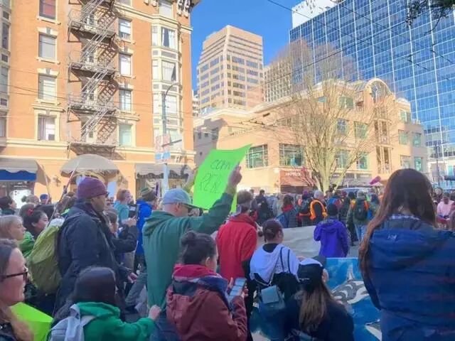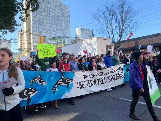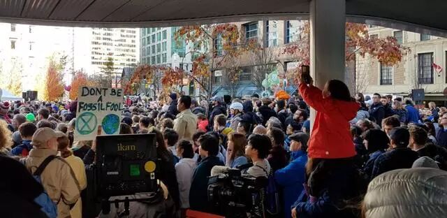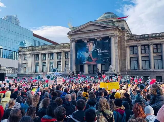 这个凭一己之力激起全球环保抗议狂潮的16岁小女孩,已经成为无数青少年心中的“环保教母”。今天,桑博格的世界巡回宣讲来到温哥华站,瞬间引爆温哥华环保主义者们的热情,上万名民众涌入市中心,齐聚温哥华美术馆前,只为一睹“环保教母”真容。