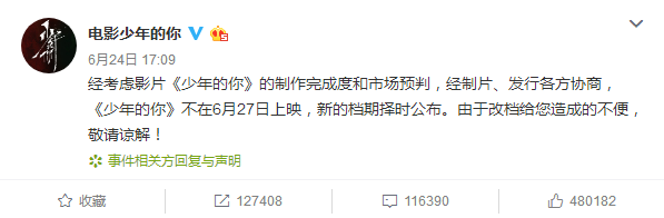 直到6月24日,影片突然宣布延期上映,原因是“制作完成度和市场预判”。而在这前几天,已经有不少业内人士看过了全片。