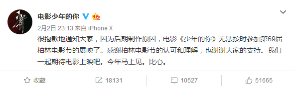 《少年的你》被格外关注,有一部分原因是因为它接二连三的“缺席”。