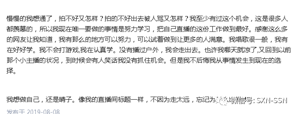 而曾经晴子也在知乎有过本人回答,她知道自己的上下限在哪里。用现在的网络流行语言就叫心有B数,不会因为天降的巨大流量而膨胀,也不会因失去了这些流量而怅然若失。不要当自己是一个大网红就好。