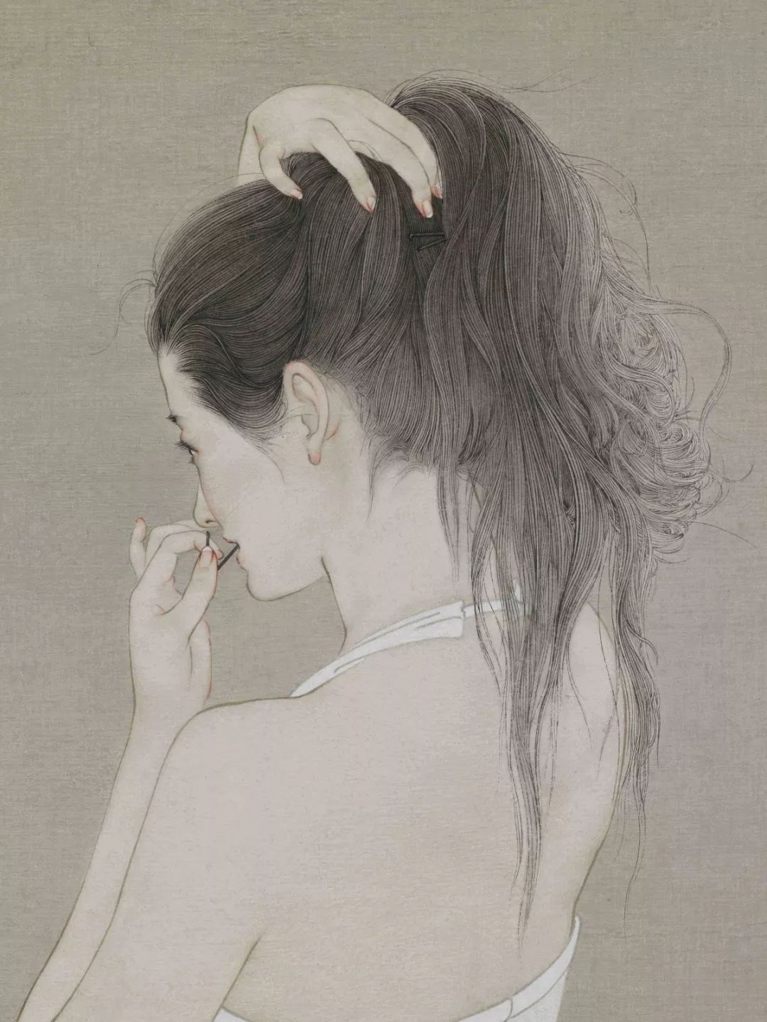 所以她博学多艺,音乐、文学、美学都有涉猎画工扎实,内心宁静,始终春风化雨的内心展露在画上人物的脸上、眼神里这样的画让人一看到就瞬间安静下来