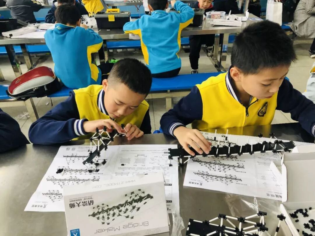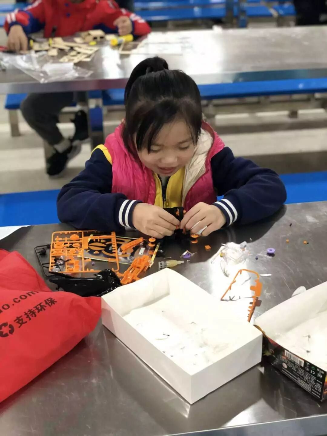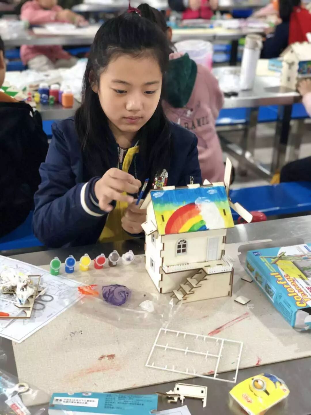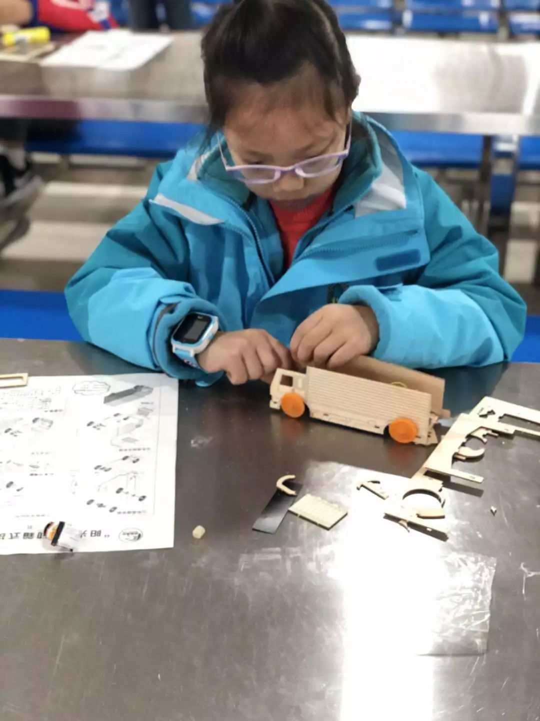 咦?这里好安静啊,难道没人吗?哦,原来大家都在安安静静的,无比专注的拼装(妆)自己的模型,想要在1小时后大展风采。瞧瞧这两位可爱的小女孩儿,有多么灵巧的一双手,?彩虹,白云,字母,不同的色彩跃然于“屋顶”让原本单调的小木屋瞬间生气勃勃,我想这样的木屋如果放在树上,任何一只小鸟,小松鼠都想要去住住吧。虽然只是一个简单的小屋却可以看到孩子们的心中充满了色彩。“老师,我做好了……”这边的桥梁大师大显身手,细小且数量众多的零件在各位“大师”的巧手下巧思中逐渐显露真容。四驱车又登场了,这次是在拼装赛场上,各位车辆组装师认真观察说明,检查材料,仔细的组装着。