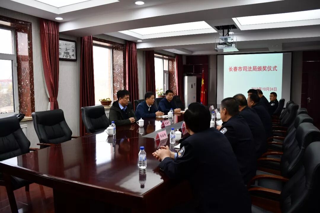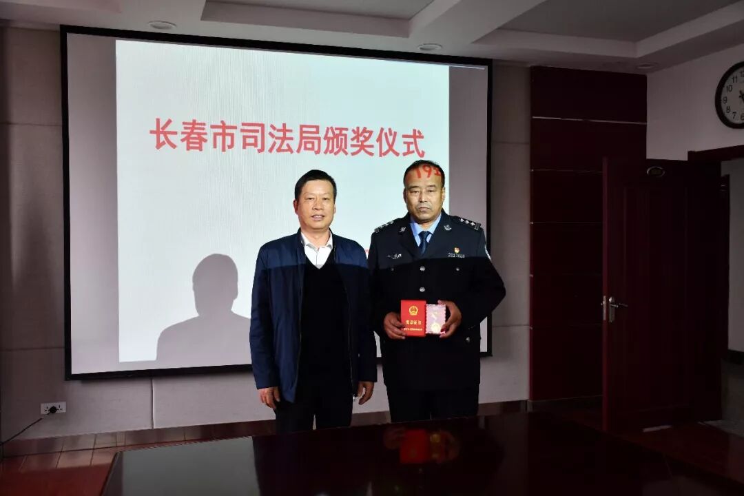 受局党组委托,24日下午,局党组成员、政治部主任鲍龙乡率局机关党委、组织教育处相关人员,专程到市朝阳沟强制隔离戒毒所,组织举办“长春市司法局颁奖仪式”,对侯向前同志进行表彰奖励。颁奖过程中,宣读了长春市司法局《关于为侯向前同志记个人三等功的决定》(长司发〔2019〕54号)和《关于在全市司法行政系统广泛开展向侯向前同志学习活动的通知》(长司政发〔2019〕11号),局党组成员、政治部主任鲍龙乡代表局党组向侯向前同志颁发了立功授奖证书和奖章,并希望全所各级党组织要把侯向前同志先进事迹作为“不忘初心、牢记使命”主题教育的生动教材,组织和引导广大党员干部广泛开展“学身边典型、树先锋形象”活动,深查细照、笃行实改,用榜样力量激励自己,用信仰力量淬炼党性,为推进全市司法行政工作进位争先积聚正能量,在推动长春全面振兴、全方位振兴的生动实践中担当作为、建功立业。