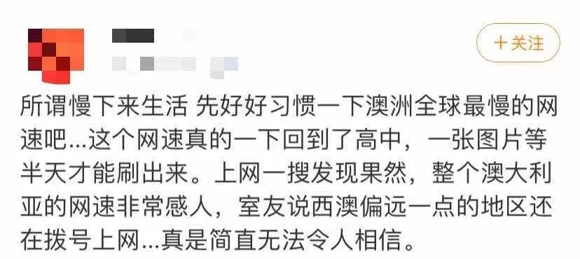 很多在土澳的华人们也都纷纷受不了,全民吐槽这个没救了的网速。