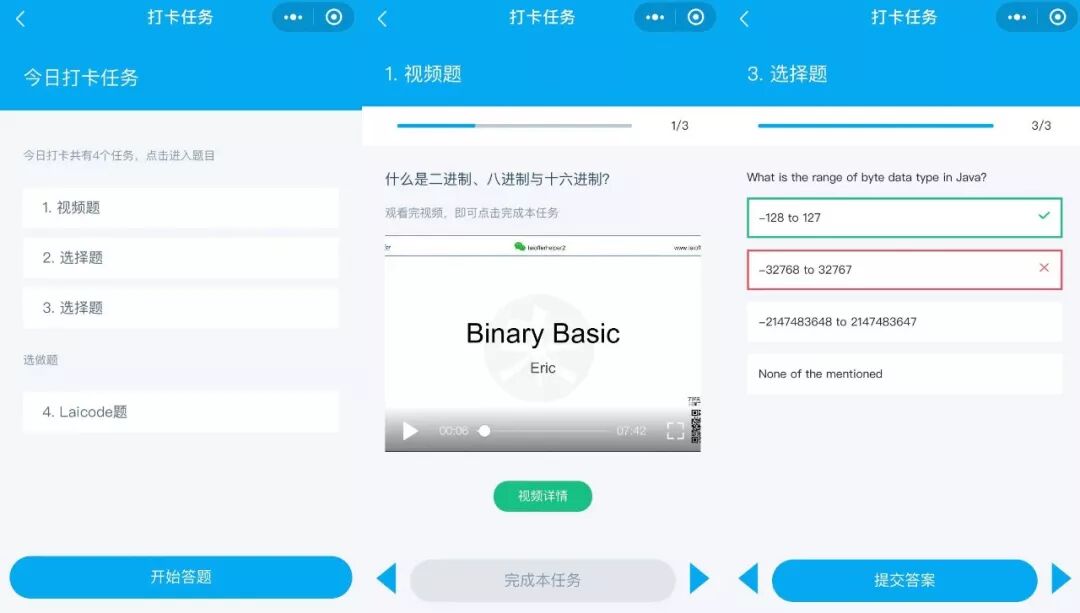我们将在活动群里发布面试经典算法编程题和概念小视频,督促大家每天学习,勤学勤练。每天坚持打卡的同学,有机会获得各种福利哦!