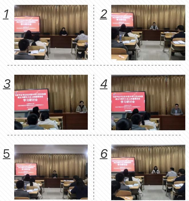 随后,研究中心张秀阁、刘永红、李峥钰、李福鹏、王兴隆、李宝佳六位教师代表结合自身的学习、经历分享了心得体会。他们一致表示,习近平总书记的讲话让人心潮澎湃、备受鼓舞,都为生活在新时代的中国而倍感骄傲和自豪。新中国70年波澜壮阔,国家发展日新月异,习近平总书记的讲话是对历史的总结,也是中国人民和中华民族在新时代迈向新辉煌的宣言书和动员令。各位老师的发言虽然视角不同,但都深刻认识到了坚持中国特色社会主义道路、制度的重要意义和中国共产党在中华民族站起来、富起来、强起来中不可替代的核心地位。