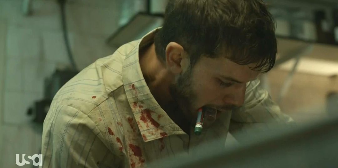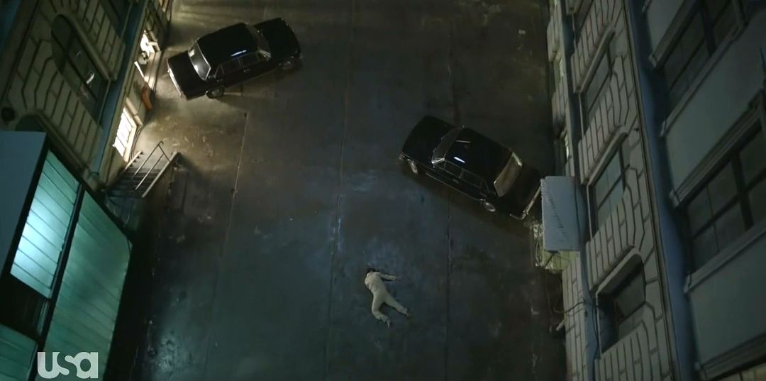 而男子被迫跑到停尸间后,他发现窗外到街道有几十米高,似乎他走投无路了。镜头一转,女子带人追到了停尸间,透过大开的窗户,伸头一看,男子已在地上的血泊中了。