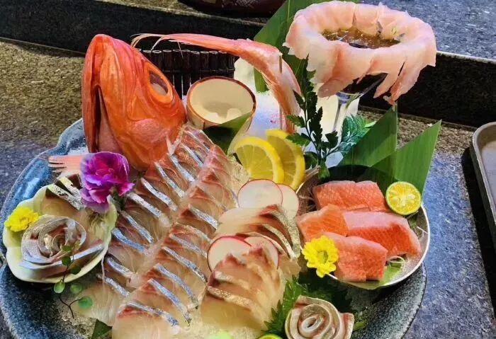 正餐日式铁板烧新鲜的刺身拼盘牛扒搭配黑椒、松露酱顺滑的鹅肝,造型美观海鲜拌饭一口吃下去清爽肉松和鱿鱼给整碗米饭提鲜