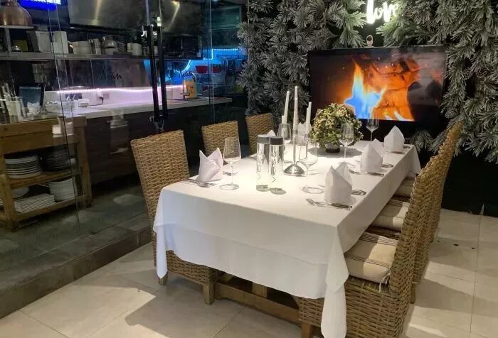 在越秀路上倚林佳园的商铺门头不大,座位不算多也不算拥挤四人座两台,围炉铁板六位另加两个包厢建议提前预约座位,便于更好地用餐