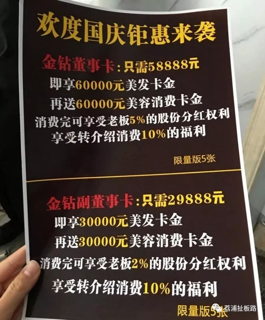 还有让人心动的 这些“优惠”卡,吸引了不少爱美女士,纷纷前来‘领’卡. 等着"分''红利. 却不知这是一场骗局.
