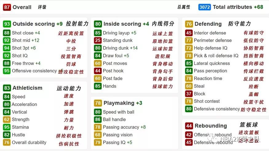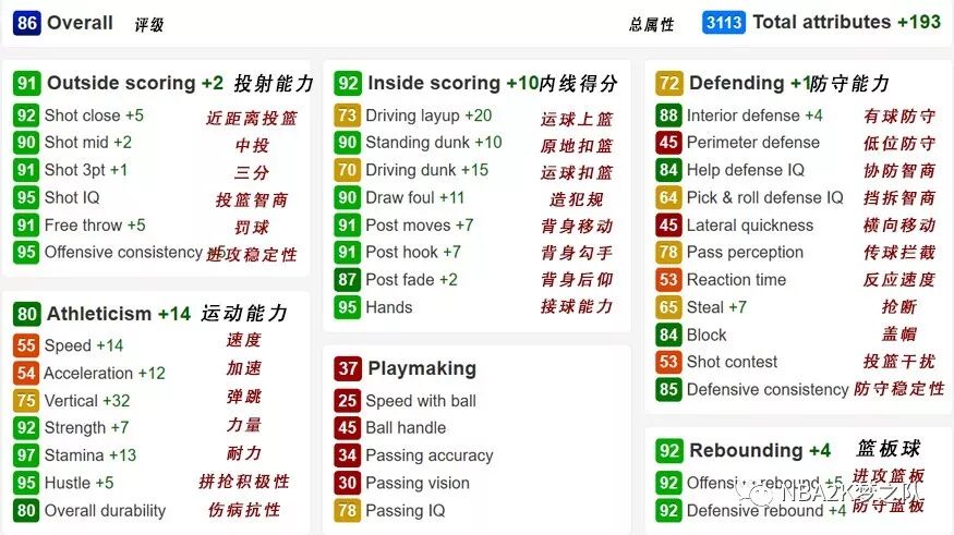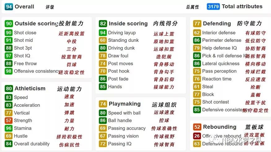 然后是现任勇士教练科尔,满星后三分可达毕业级的98点,同时速度也很快,但力量只有25...