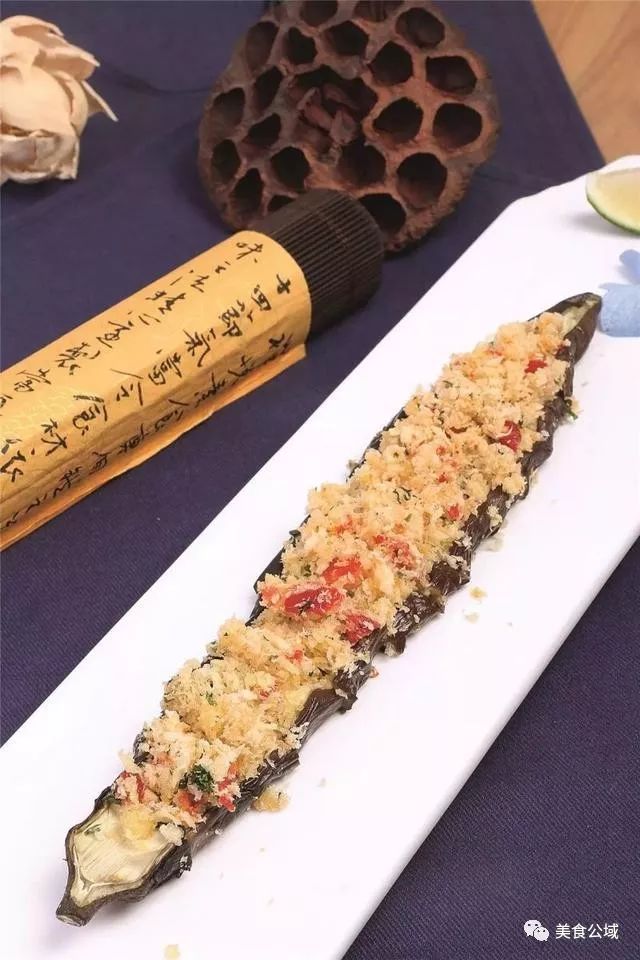 3、走菜时将面包糠撒在茄子上。