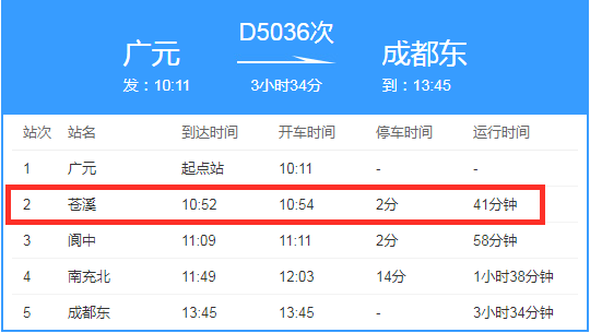 3、自10月27日起广元-成都东D5036次开行。全程票价二等座122元,一等座194元;