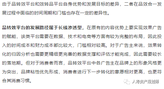 中国品效合一营销模式的未来发展趋势品转效和效转品平台在发展周期和门槛上各有特征