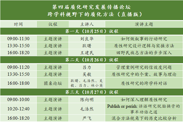 更多不能来现场参加会议的小伙伴可以加入第四届质化研究发展传播论坛的直播详情介绍如下直播日程