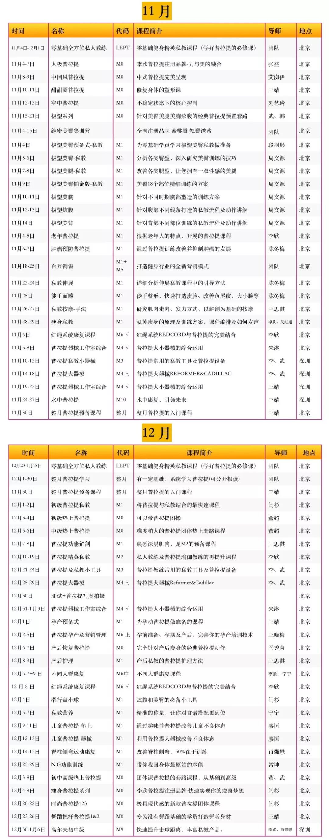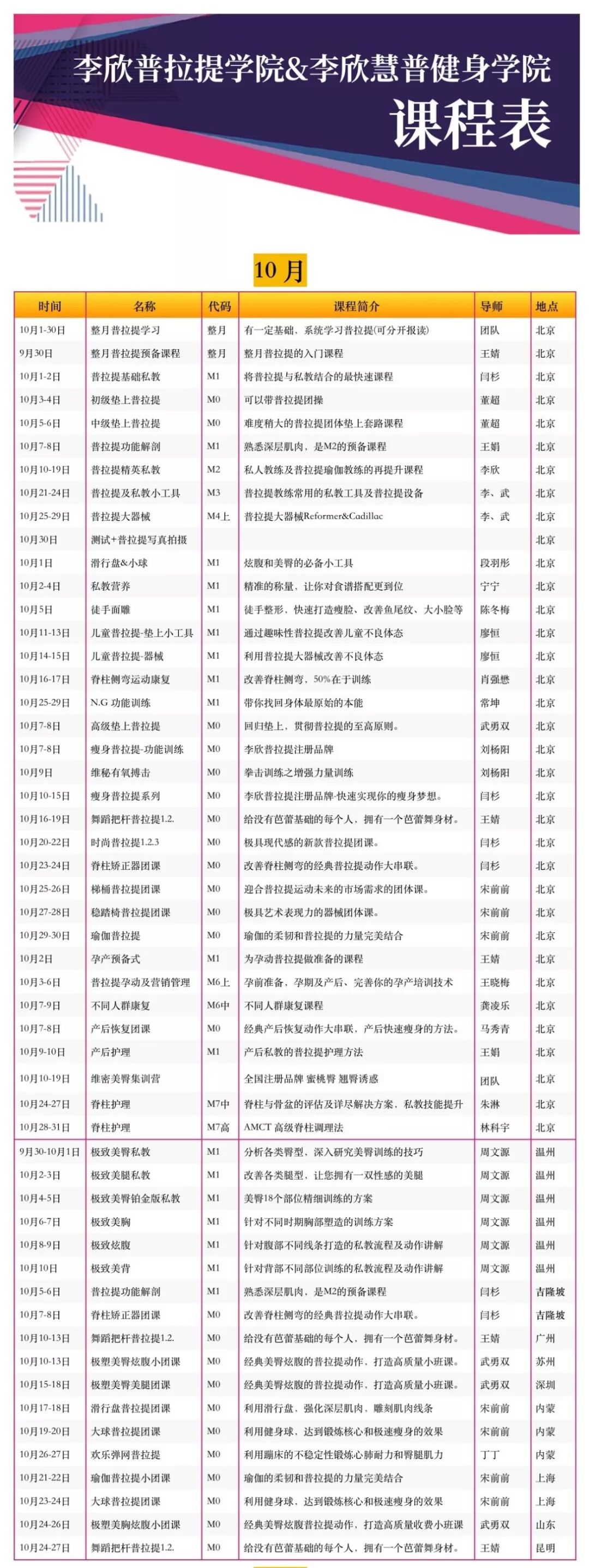 世界顶级普拉提导师+四十位国内一线导师