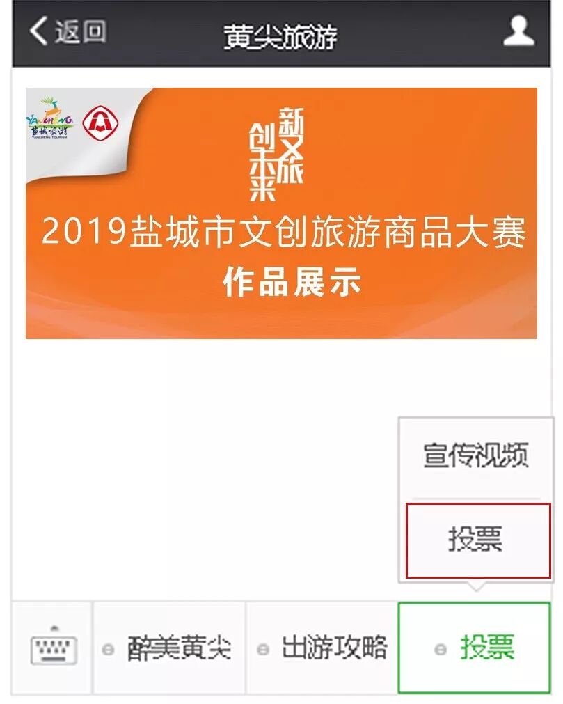 2、关注“黄尖旅游”公众号,下面菜单栏点击投票栏,输入作品编号或作品名称参与投票。