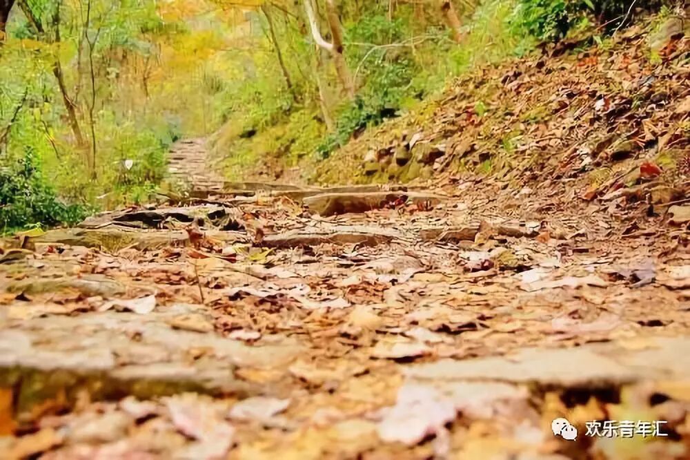 11 : 30 左右抵达壶潭村,下跟着旗帜出发,沿着隐蔽的小路登上四明山,一路向上,满眼都是亮丽的秋色,一路欢声笑语。