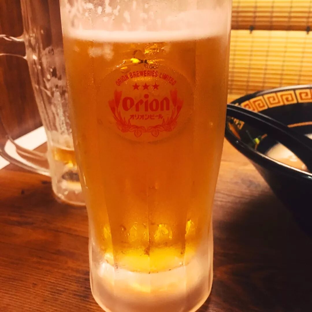 店铺隐藏在楼道下,走下去发现满满的日式风格(废话,这就是日本啊)服务员小哥礼貌地对我们打招呼,估计一眼就看出我们是外国人了吧。我告诉他我们有三个人,他一边笑着一边指引我到自助点餐机前,意思是需要我们自己购买餐券。这种操作对我来说不算太陌生,之前在各种综艺节目上就看过多回,但是第一次自己实操还是有些不安。简单看了一圈,了解是要先投币再点,三个人点了一样的拉面,我还馋这儿的啤酒,每次在日剧里看他们啤酒都喝的好过瘾,总想着机会一定要试试日本的啤酒!
