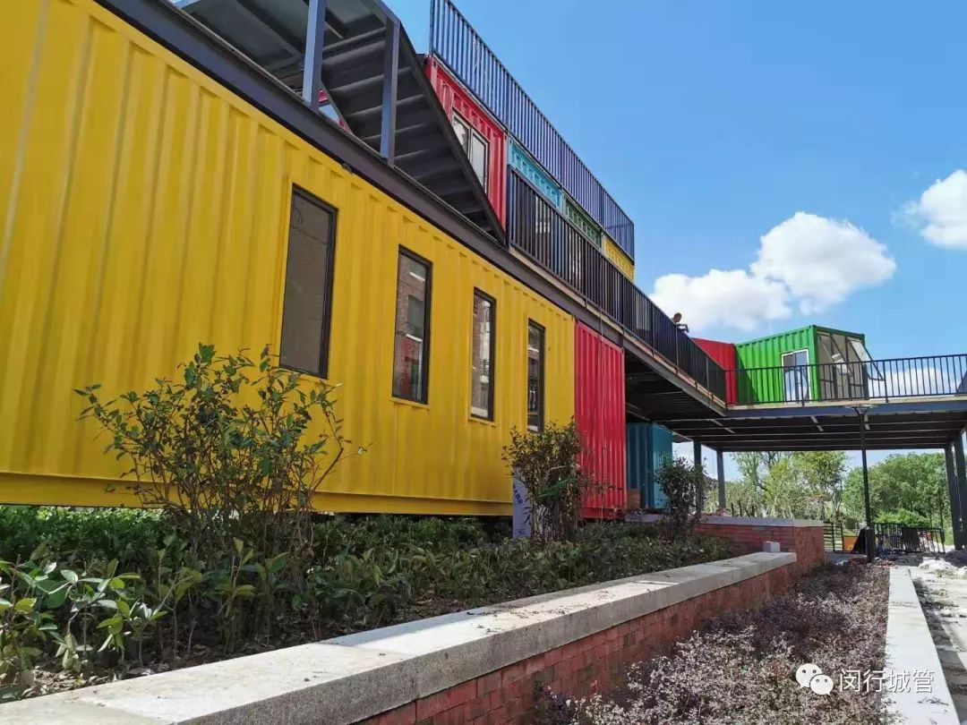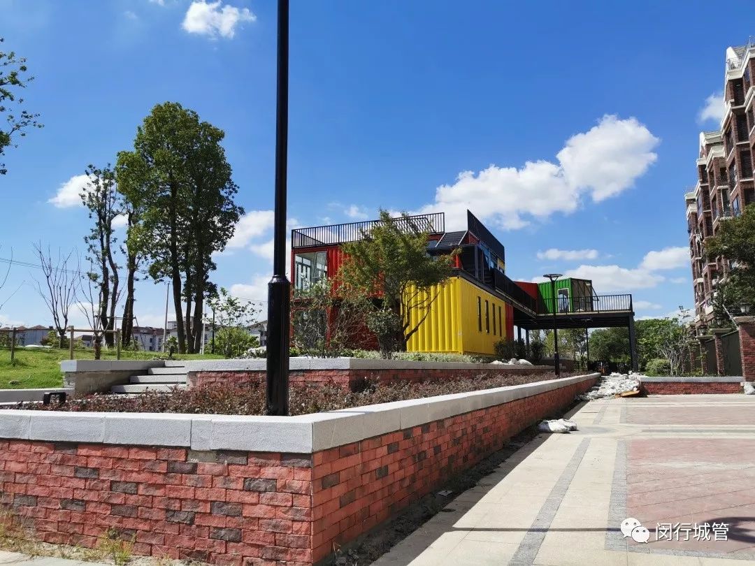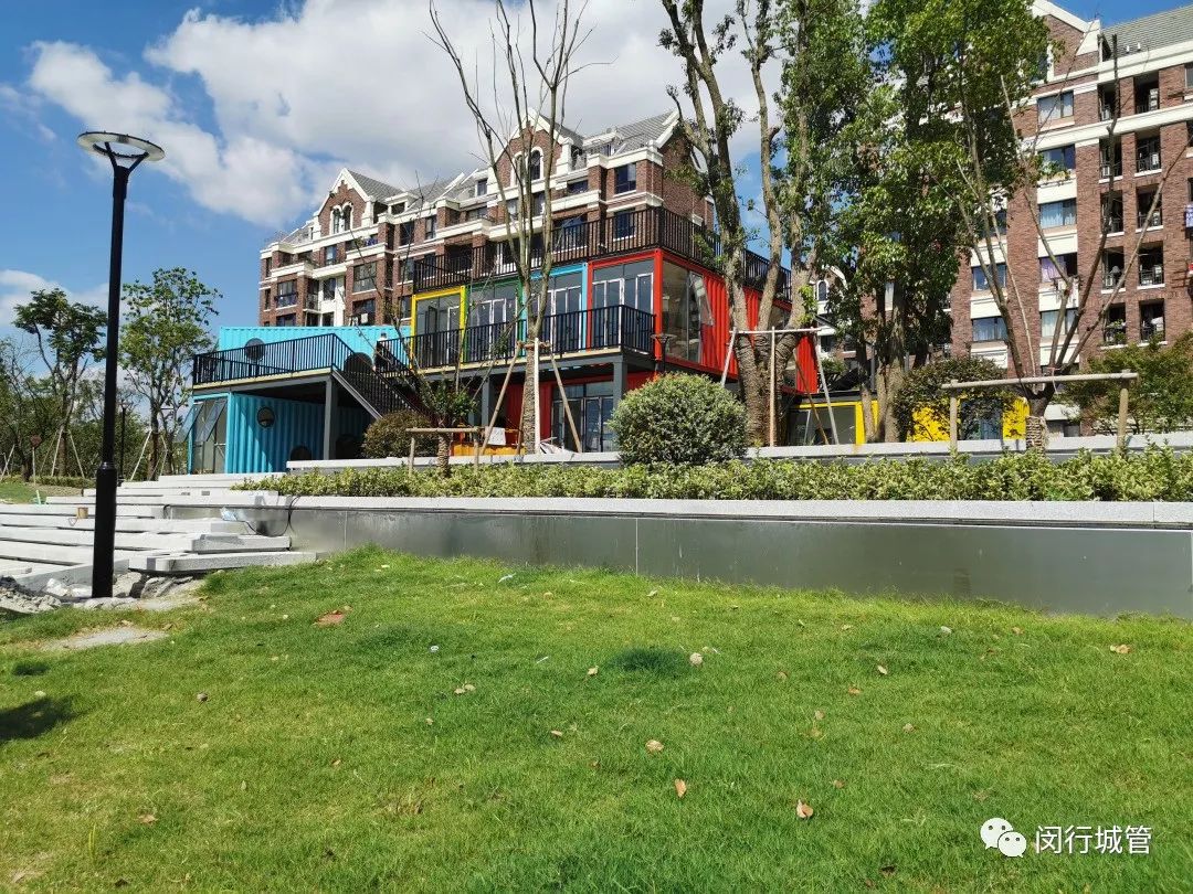集装箱建筑功能分为健身区、创意工坊、社区文化展示、儿童游乐区、卫生间5部分,是周边居民的休闲活动空间,绿地拥有层次丰富的台地、开敞的阳光草坪以及半开放树阵广场,集健身、文创、游戏、展览、服务、休闲、手工于一体的集装箱综合建筑。