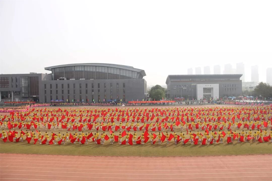2019级新生在开幕式上表演了大型团体操《中国 鲜红的太阳永不落》。今年的团体操分为《乘风破浪》、《我和祖国》、《追梦河海》、《歌唱祖国》四部分。