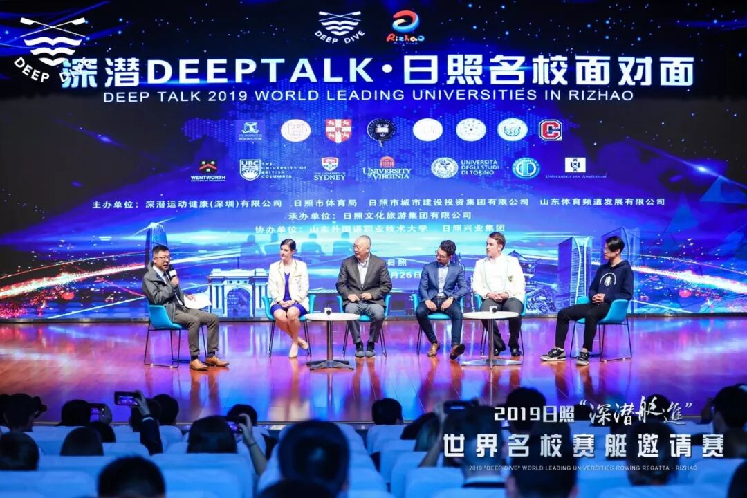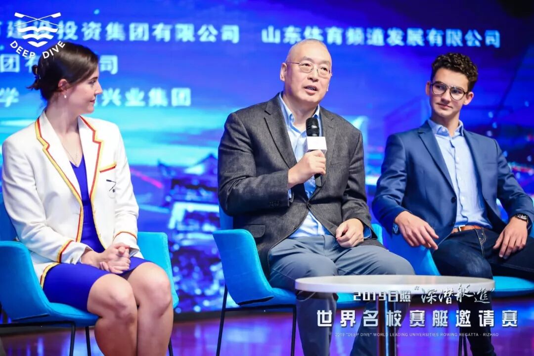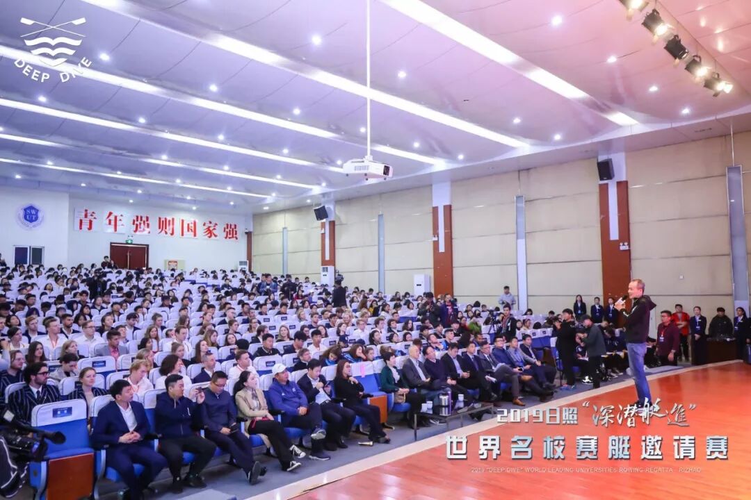 10月26日下午,以“赛艇和我们的大学生活”为主题的世界名校运动与教育交流会在山东外国语职业技术大学报告厅举行。日照市副市长林彦芹,万科集团、深潜公司创始人王石,世界赛艇联合会发展顾问、亚赛联高级顾问 ken lee,国际投资并购领域著名律师、中伦律师事务所高级合伙人王卫东,深潜公司CEO周寅猛,日照市委副秘书长、市体育局局长孟凡香,日照市政府办公室副主任陈常永,日照市城投集团党委书记、董事长李伟,山东体育频道发展有限公司总经理李群等领导来宾参加活动。本次活动由CCTV英语频道主持人杨锐主持。