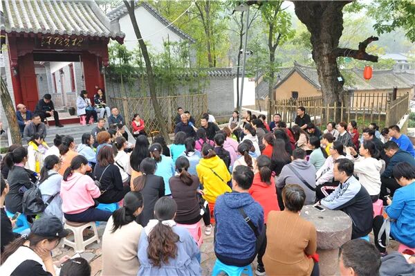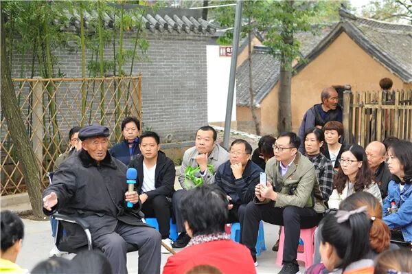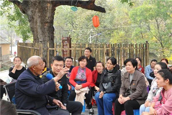 在大槐树下,党员干部聆听了当地91岁老爷爷讲述的革命故事,在内心记住了党领导下的抗日历史,铭刻着革命老前辈与敌斗争,解放人民,造福人民的初心。