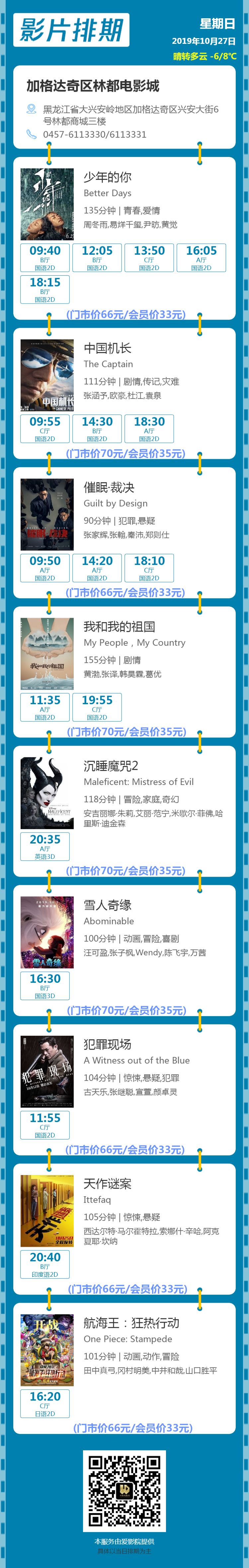 10月27日【星期日】排片表