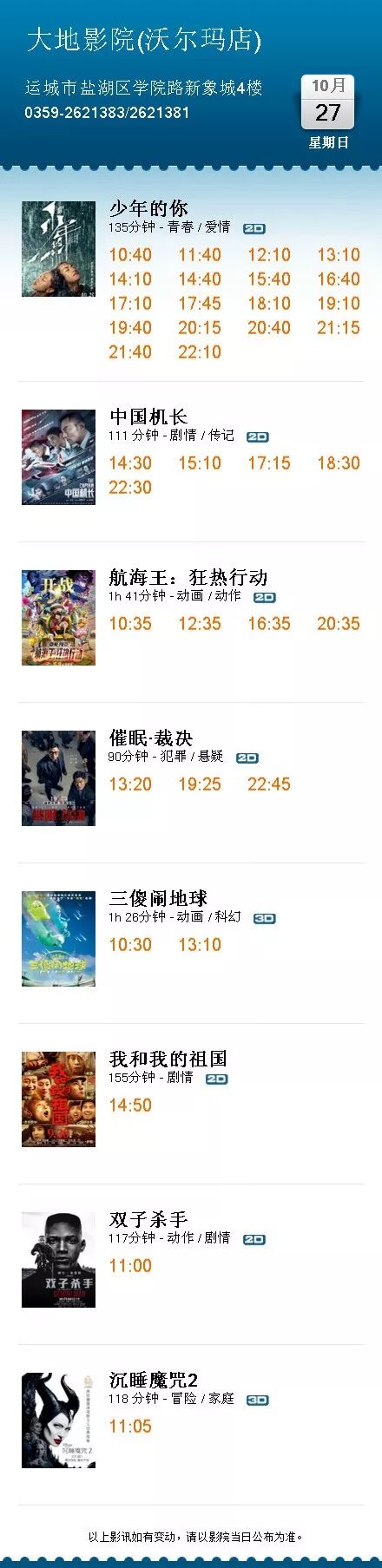 【排期】2019年10月27日影讯