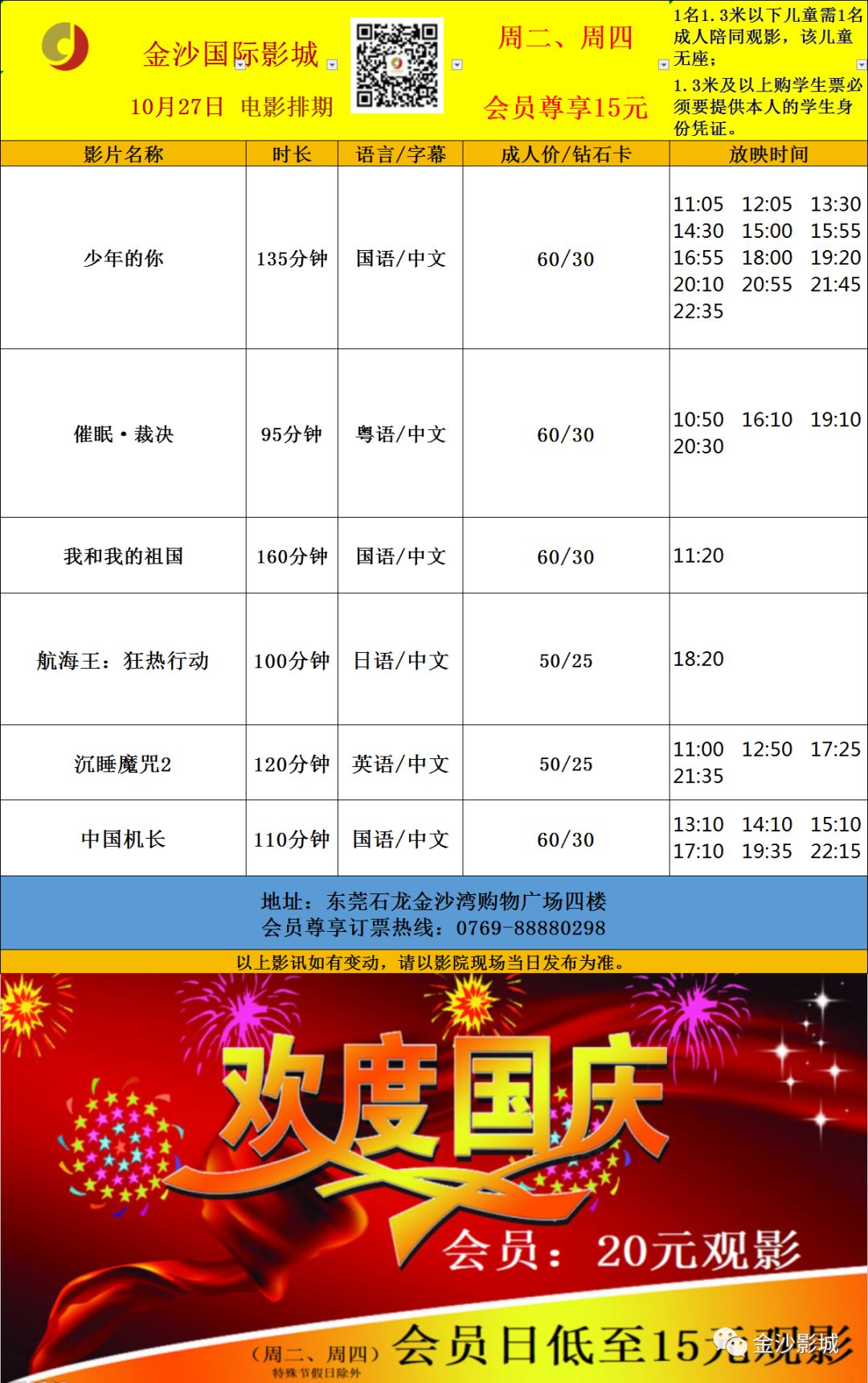 以上影讯如有变动,请以影院当日发布为准。