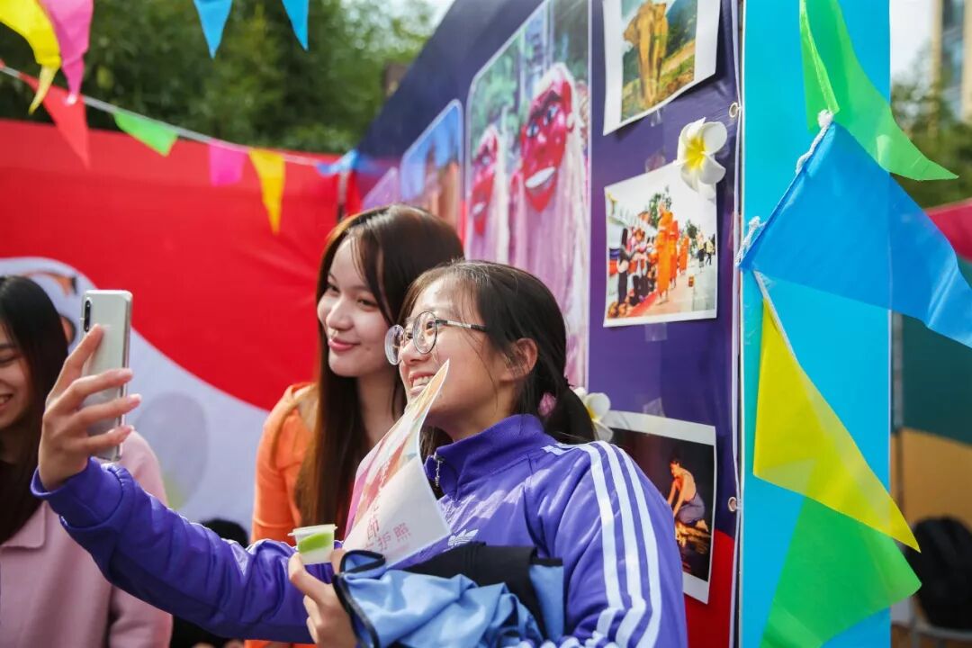 48个国家的国际学生精心搭建了国家展位和8个中国传统文化体验区。国际学生们通过照片、妆饰、美食、游戏等方式展示了当地的风土人情和传统文化,师生们穿梭于各个国家的展位,品尝免费美食,体验异域文化。