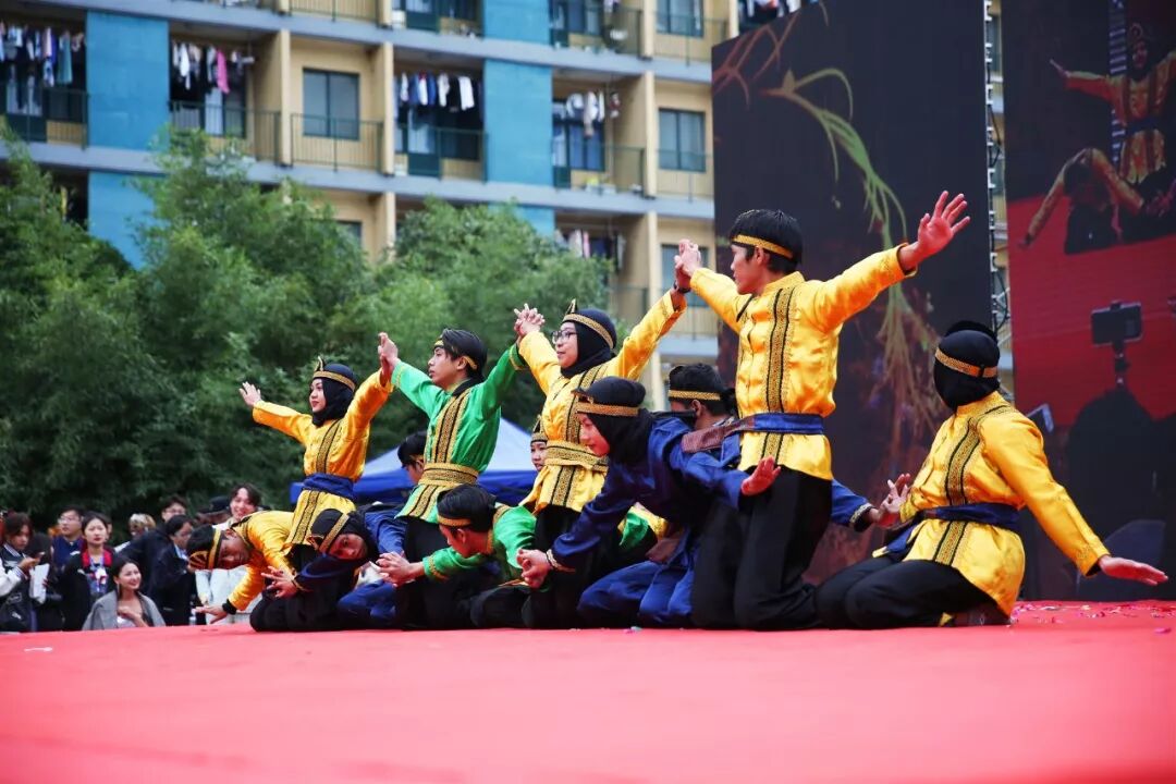 200多名国际学生身着民族服饰,俄罗斯舞蹈、蒙古歌舞、乌兹别克斯坦风情舞蹈、印度尼西亚群舞等19个特色歌舞你方唱罢我登场,欢呼声此起彼伏。