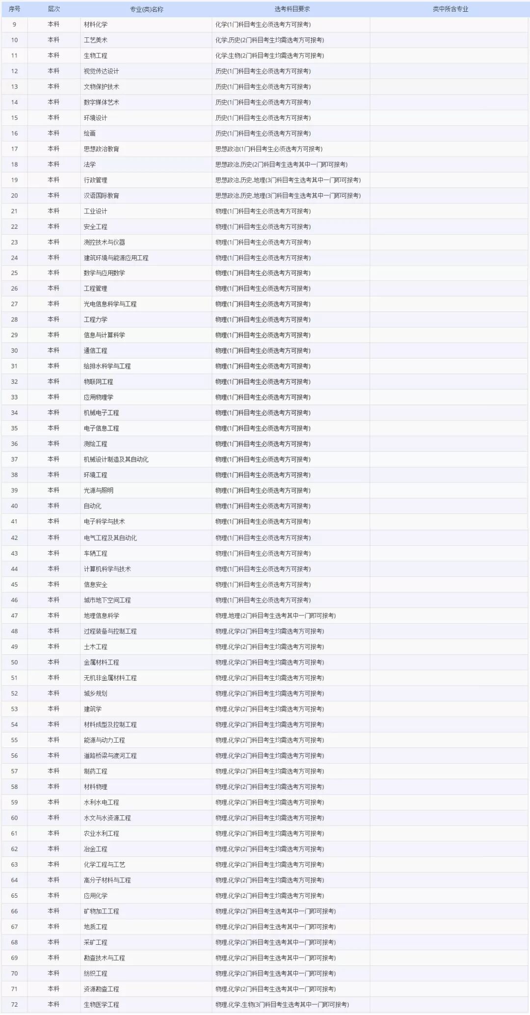 ? 下图中,仅选取了有选科科目要求的专业,未出现专业均默认为“不提科目要求”。