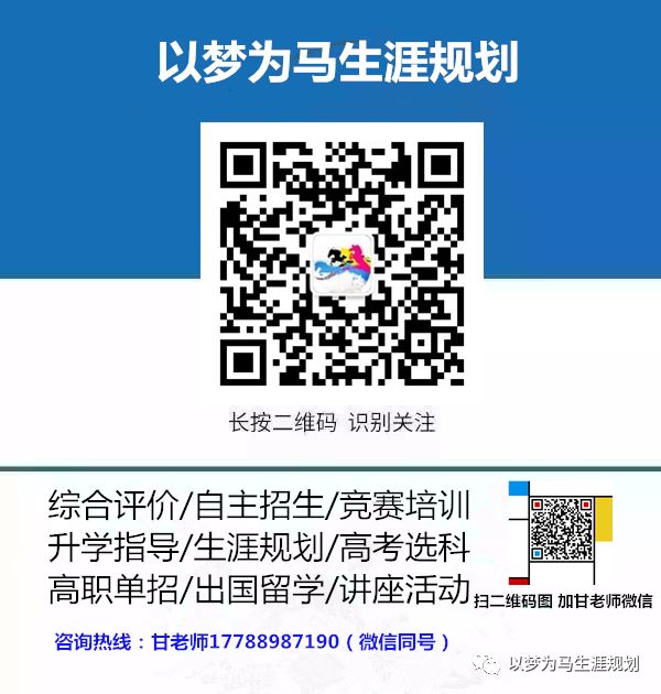 专业的事情还是得交给专业的人来做 ,需要升学规划、选科指导、专业职业生涯定位、高考志愿填报或者参加综合评价、自主招生但是不知道如何准备报名材料的家长和考生可咨询甘老师电话:1788987190 。