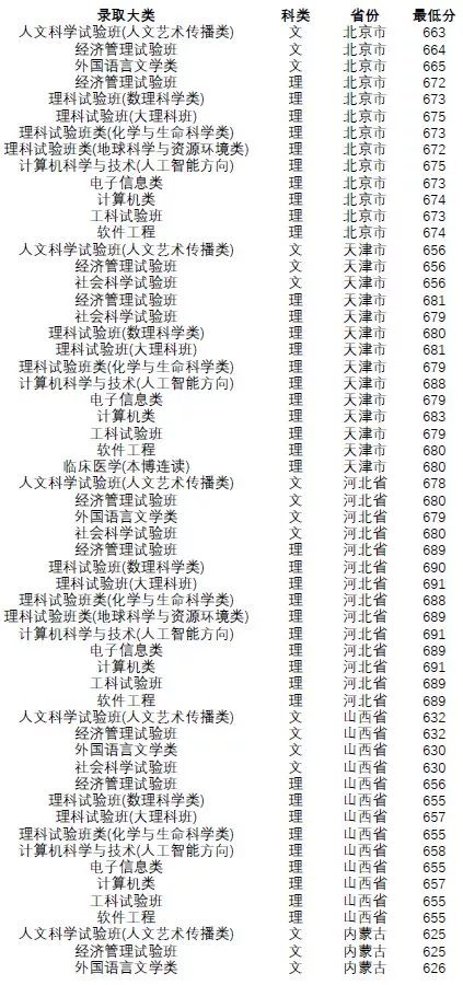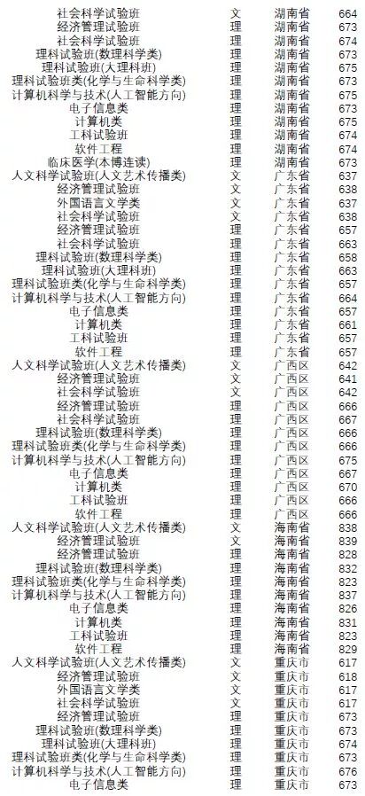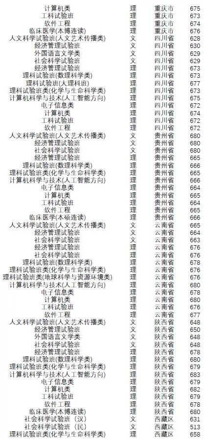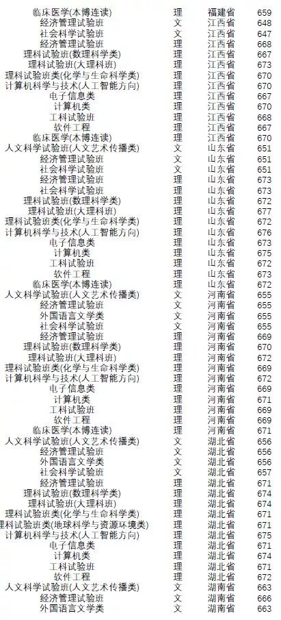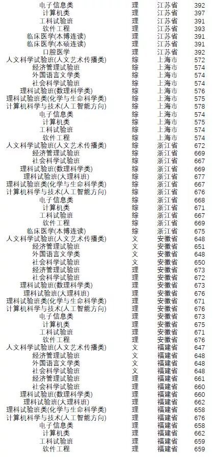 王牌专业:工科实验班(信息)、工科实验班(工学)、理科实验班。