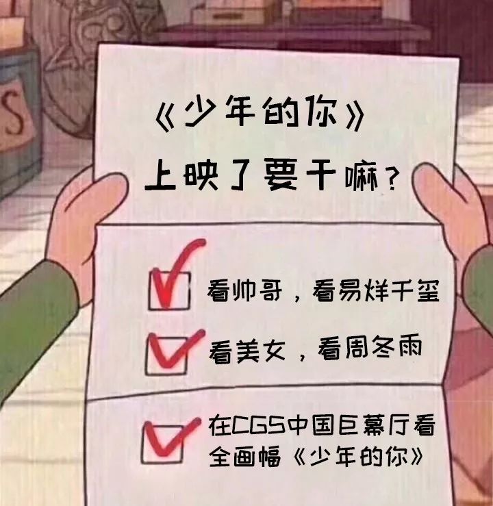 朋友们划重点:CGS中国巨幕全画幅!让你能欣赏到满屏小北和陈念无死角的脸,帅到窒息!