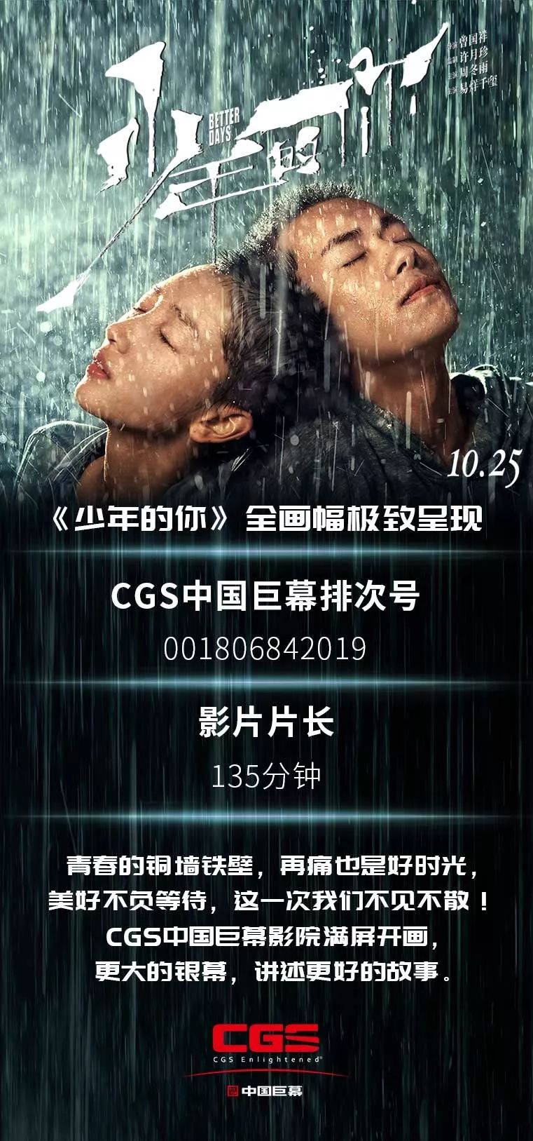 尤其是荆门博纳CGS中国巨幕《少年的你》全画幅为巨粉们带来更宽广的青春世界,年少的彼此更加动人。